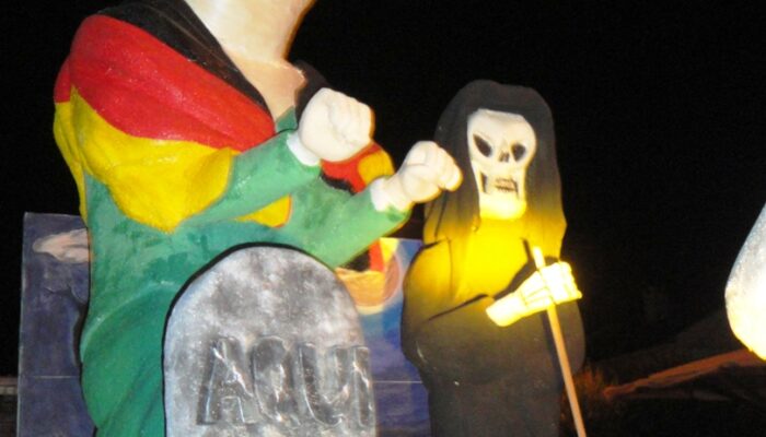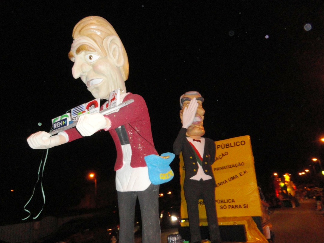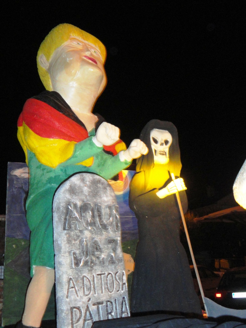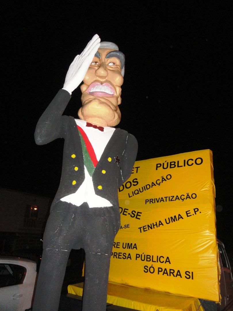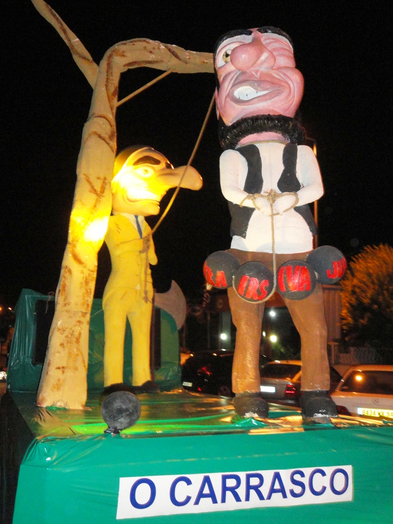 As primeiras ideias começaram a surgir ainda o verão estava a despertar e, em inícios de Julho, o tema estava decidido. “PROFISSÕES” seria o tema e através dele construiríamos o nosso corso. A realidade política, social e desportiva portuguesa e internacional trataria de nos fornecer os temas a satirizar. Preparava-se assim o Animares para apresentar um desfile centrado nos temas quentes do nosso quotidiano. Em tempo de resgate financeiro, de severo aperto fiscal e de escândalos políticos e sociais não poderíamos deixar de apontar o dedo e de satirizar alguns desses factos. Deste modo, as profissões escolhidas seriam encarnadas por agentes nossos conhecidos. Apresentaríamos: o coveiro Coelho, ladeado pelo ceifeiro da morte, a enterrar Portugal sobre o olhar e a batuta atenta da Sra. Merkel; o carrasco Portas, enforcado o Zé Povinho carregado de impostos; o vidente Gaspar, profetizando na sua bola de cristal o fim da crise e a prosperidade; o carpinteiro Relvas, fazedor de “cadeiras” e distribuidor de diplomas e favores; o servente Borges, serviçal dos grandes grupos internacionais e facilitador na privatização dos bens públicos, atuando sobre o olhar sereno e comprometedor do regulador Cavaco; os vendedores, Pinto da Costa, o da fruta, e Viera, o dos pneus, na sua luta pela primazia do futebol português. Como crítica inicial, presidiria ao corso um carro de Reis emigrados e vazio simbolizando a crescente vaga de emigração. Através da sátira nos nossos carros alegóricos e dos grupos envolvidos pretendíamos transmitir ao público uma mensagem de alerta, um apontar o dedo baseada na crítica à nossa realidade. Queríamos dizer “o Rei vai nu”.